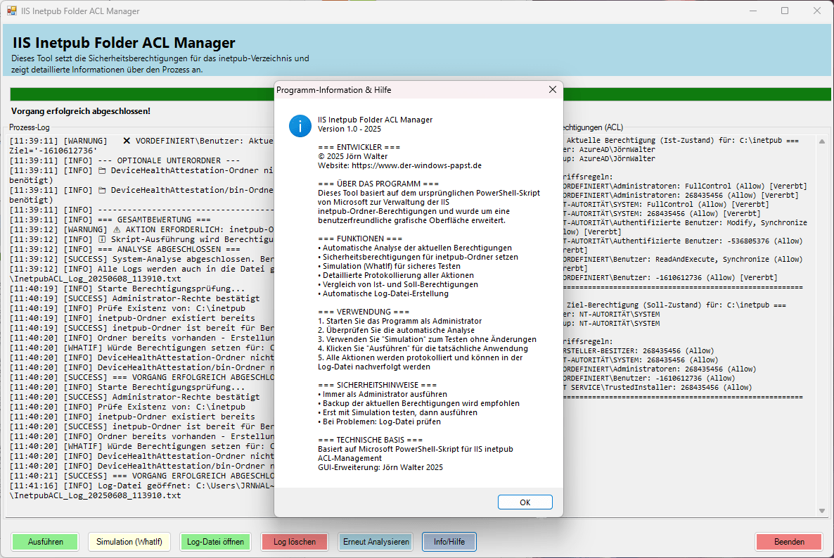 Das Skript IIS Inetpub Folder ACL Manager könnt ihr wie gewohnt über Github NDSEDV/PS herunterladen.