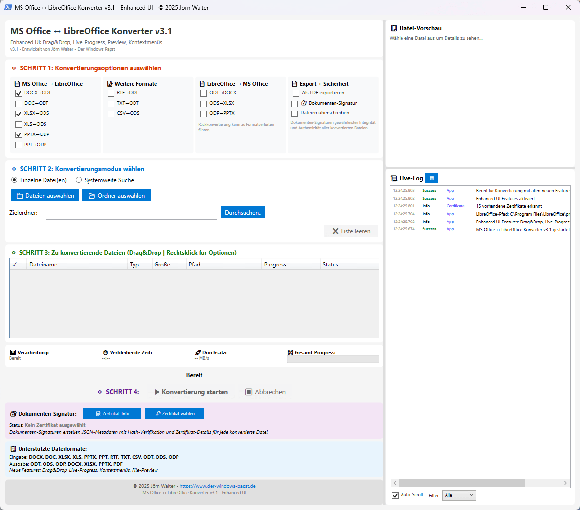 PS C:\Users\JörnWalter> C:\Users\JörnWalter\OneDrive – Jörn Walter\Desktop\MS Office zu LibreOffice Konverter.ps1
