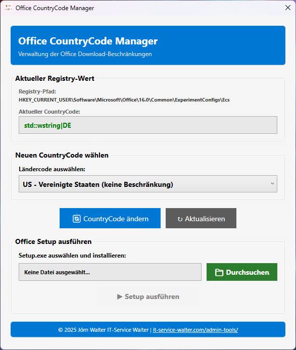 Microsoft Office implementiert geografische/regionale Beschränkungen für bestimmte Office-Installationen und Updates. Diese werden über den sogenannten CountryCode in der Windows-Registry gesteuert.