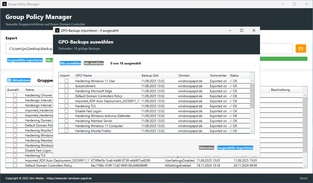 Group Policy Manager Backup und Restore