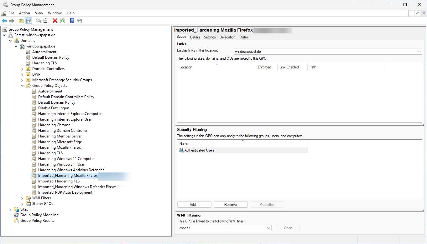 Im Group Policy Management sieht es nach dem Import wie folgt aus.