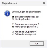 Weist Gruppenmitgliedschaften und Manager nachträglich zu. Kann nach dem Benutzer-Import ausgeführt werden.