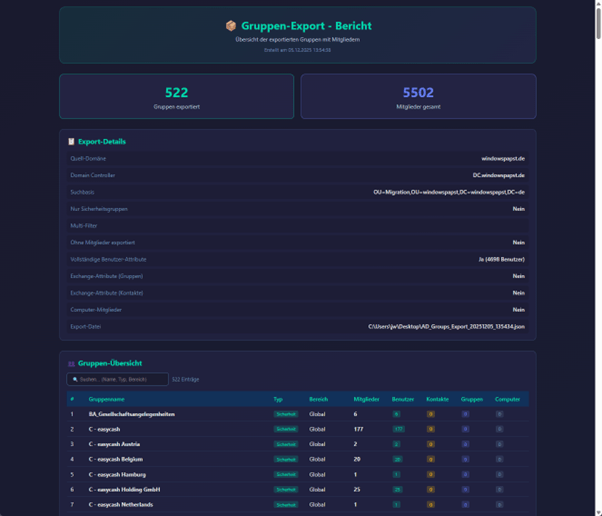 - Gruppen-Export: Extrahiert Benutzer aus Gruppen-Mitgliedern
