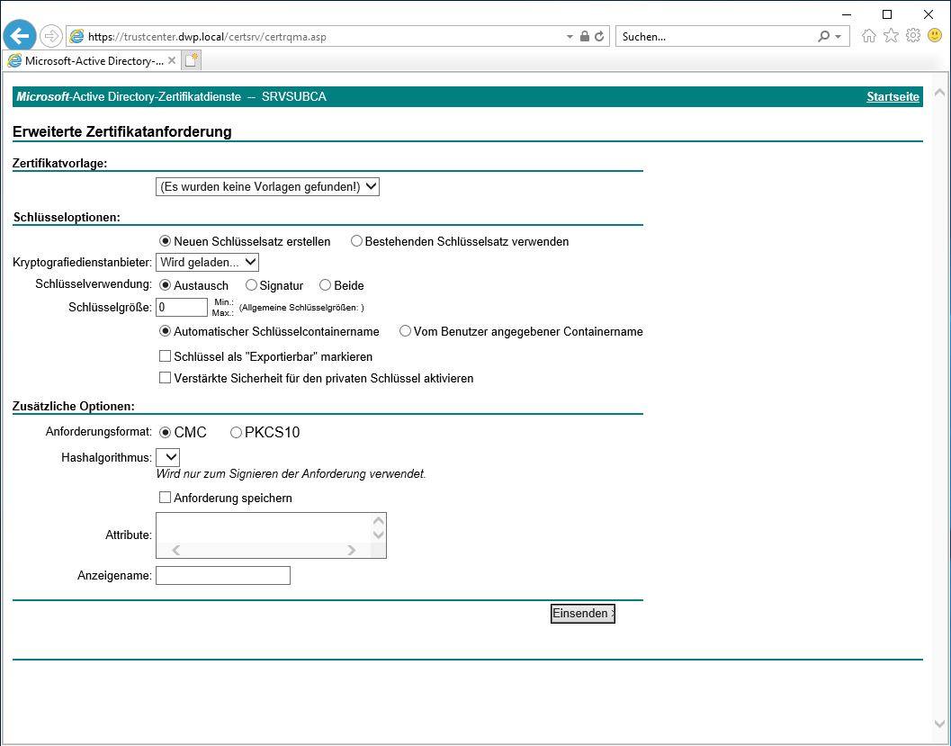 Webregistrierung keine Zertifikatsvorlagen Dieses Thema ist eigentlich ad acta gelegt, da niemand mehr mit Vorlagen des Typs 1 und 2 arbeitet. Sollte es aber dennoch
